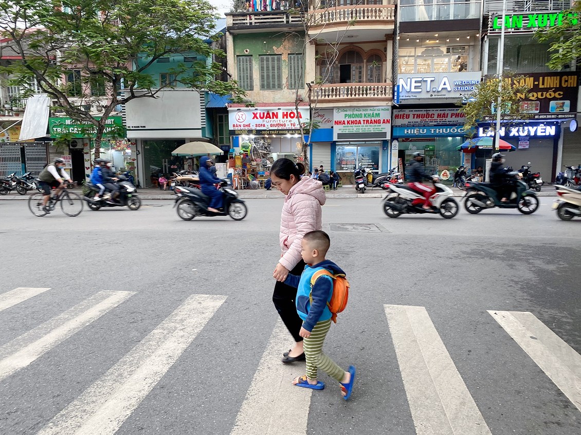 Cha mẹ hãy dạy trẻ ra đường phải đi trên vỉa hè vốn dành riêng cho người đi bộ, kể cả khi vỉa hè bị xe cộ hoặc các hàng quán lấn chiếm, con không nên chạy xuống lòng đường bởi như thế rất nguy hiểm.