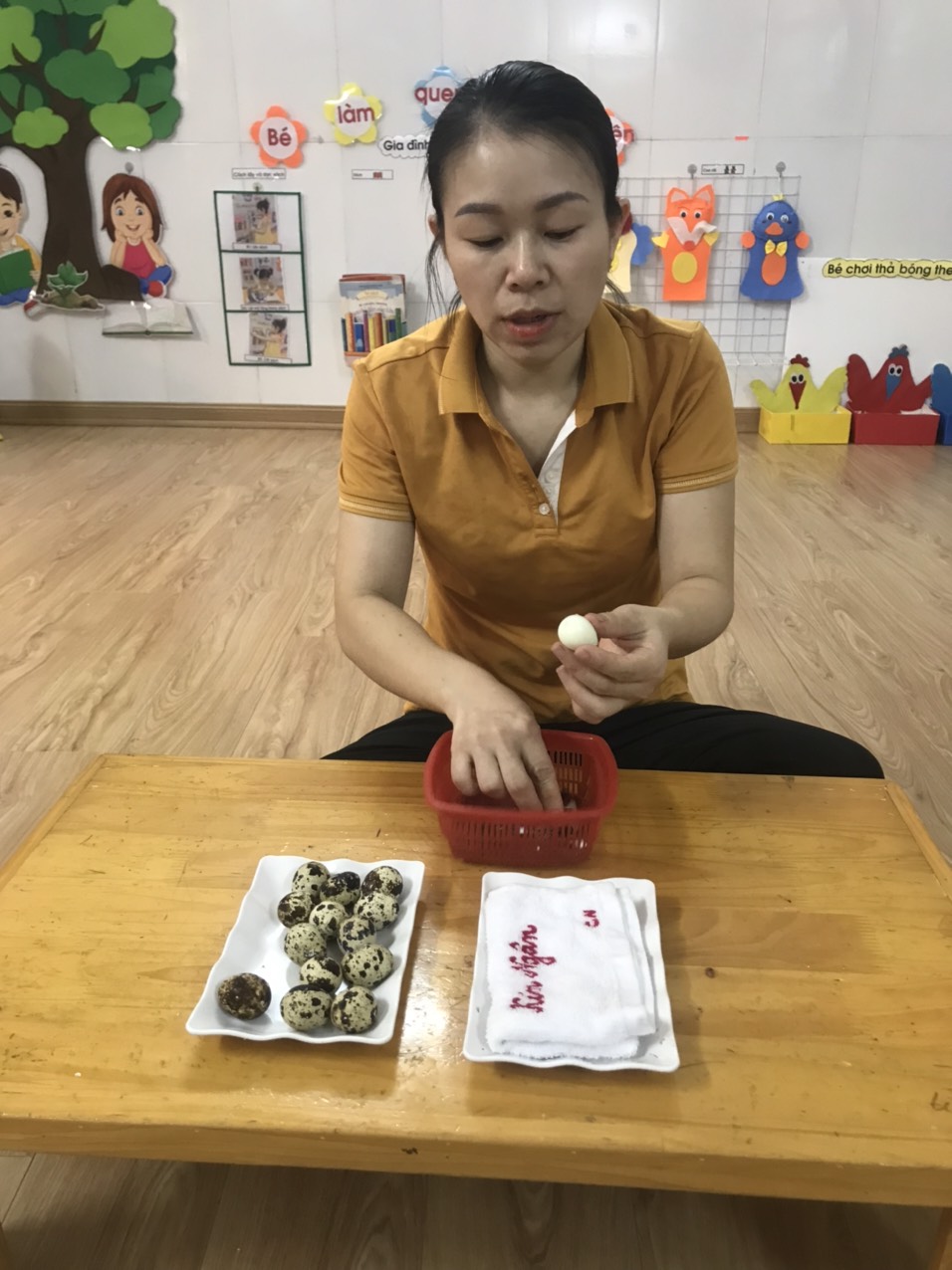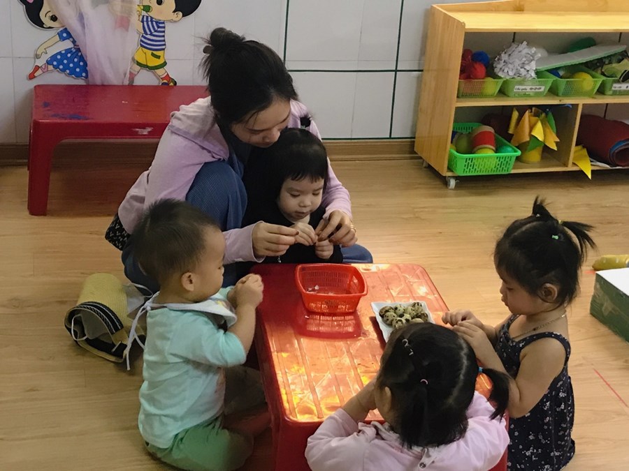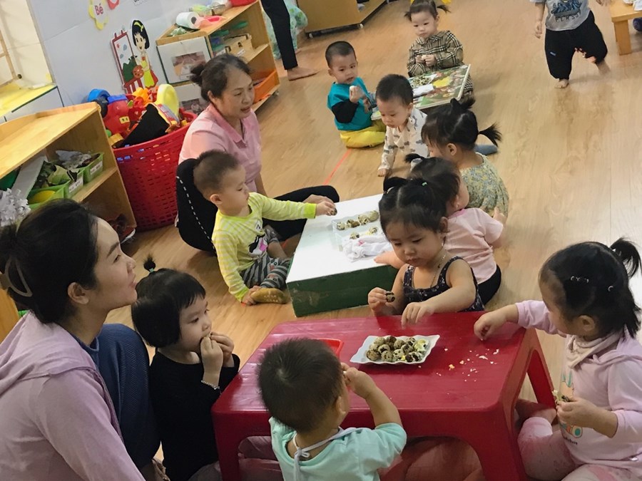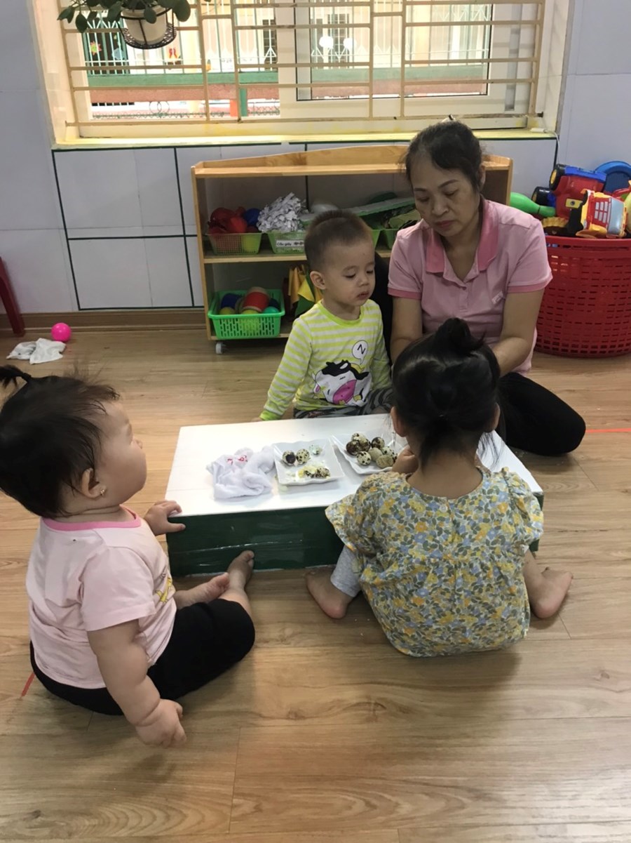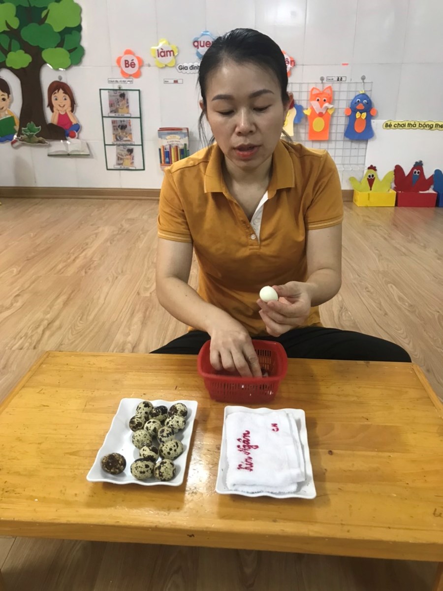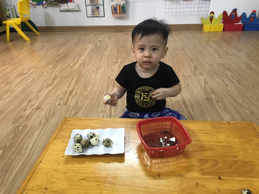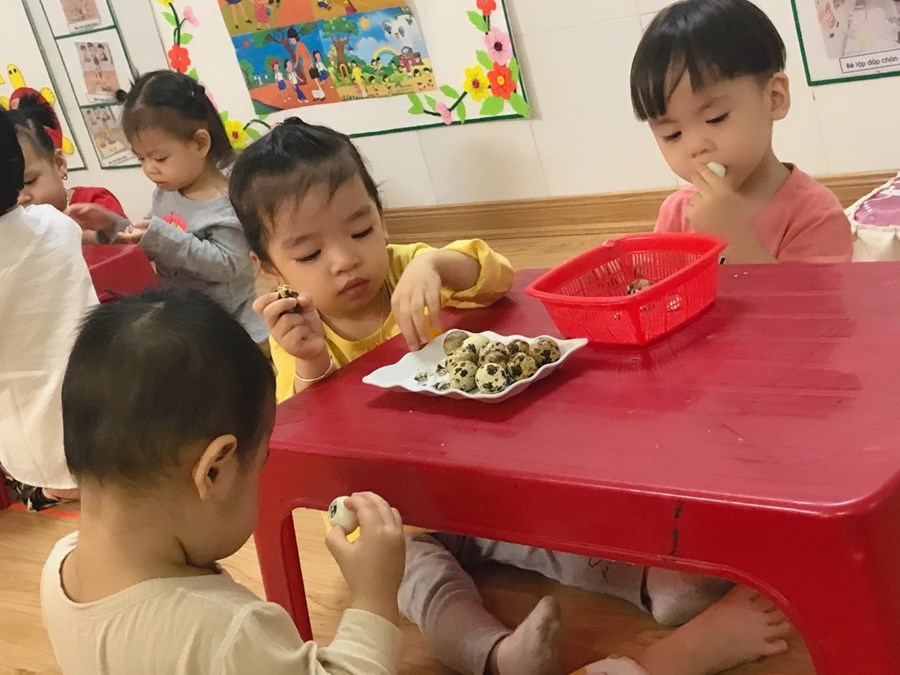 Sau đây là một số hình ảnh hoạt động trải nghiệm bóc trứng chim cút của khối nhà trẻ.
