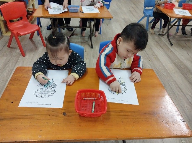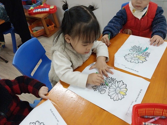 Được tự tay cầm bút tô di màu bức tranh bông hoa, các bé lớp Cơm nát vô cùng hào hứng và thích thú. Các cô mong sao sau mỗi giờ học tạo hình sẽ là một động lực thúc đẩy cho các con thích học, thích tìm tòi khám phá nhiều hơn nữa những điều mà các con chưa biết, chưa được trải nghiệm. Qua giờ học các con cũng thấy được rằng còn rất nhiều điều phía trước còn rất nhiều điều mới mẻ đang đợi các con tìm hiểu, trải nghiệm và khám phá.